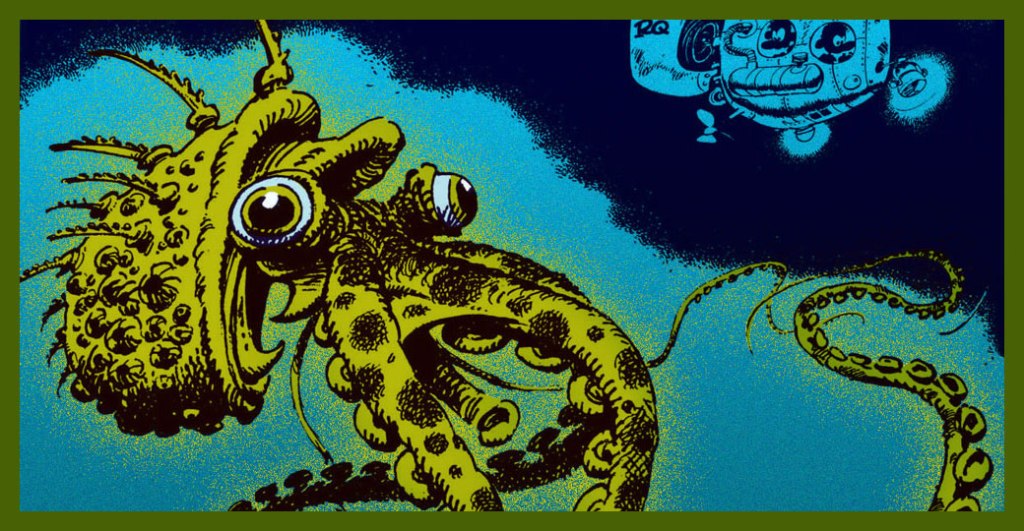 Co-admin RG called André Franquin‘s œuvre “an embarrassment of riches” in his Faites gaffe, monsieur Franquin! post. I thoroughly agree, and am very pleased to report (though this is in no way surprising) that tentacles are part of his vast répertoire.