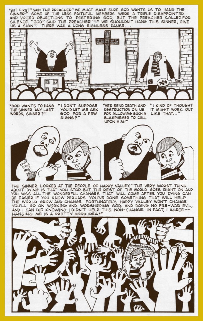 The original story is over thirty pages long, so I’m just providing highlights, including the conclusion, which is quite cute. While it must be incredibly hard to write mindless, invulnerable characters, Moench had a good punchline in mind all along.