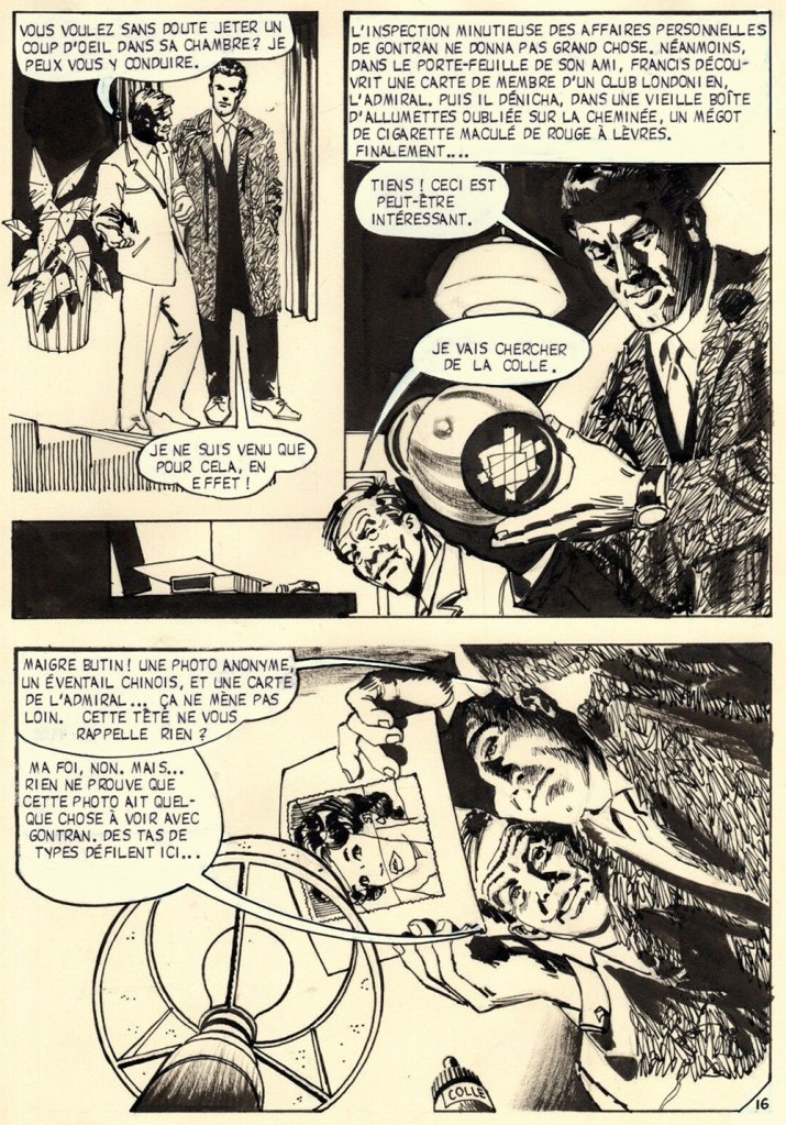 Position clé, page 33 (1971). Note Huéscar’s confident use of a dry brush technique and his bold use of negative space (panel one in particular).