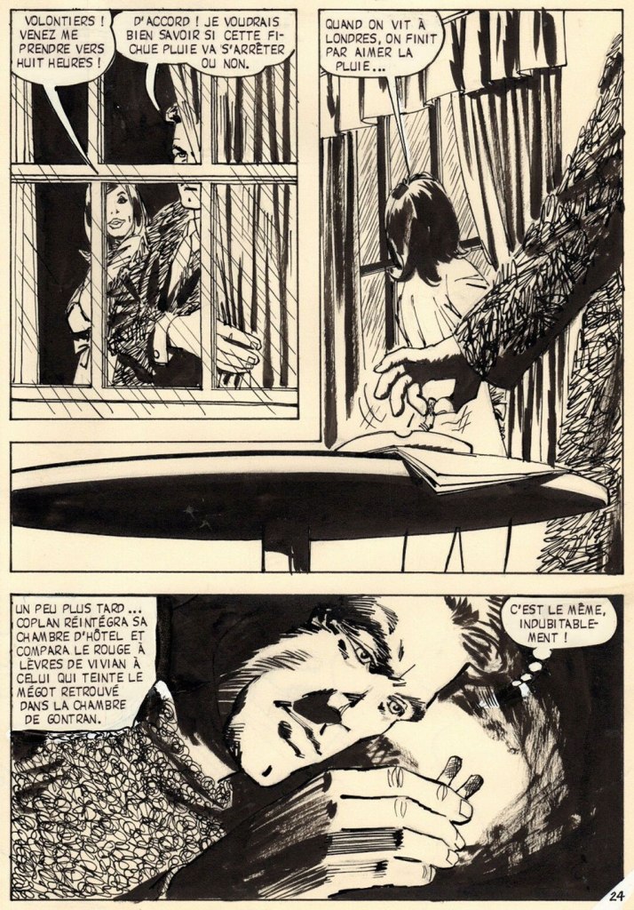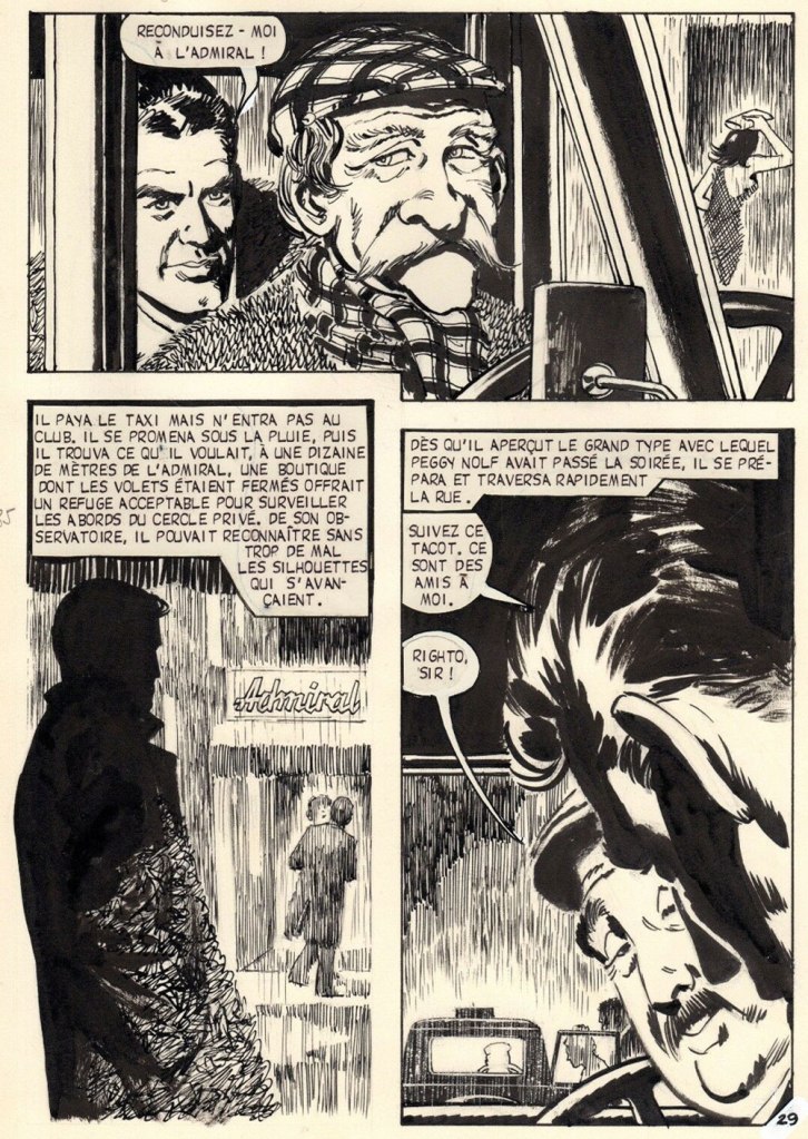 Sabotages sanglants, page 29 (1971). Fun with textures, great depth of field work, again with clear storytelling despite the invasive captions.