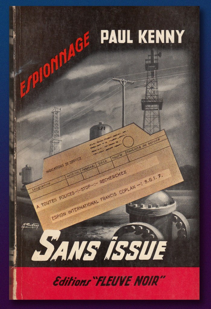 As it happens, Mr. Bruce decided, after 25 novels in three years, to shift his series over to a rival publisher (Presses de la Cité*). Fleuve noir, understandably scrambling to avoid a massive shortfall, commissioned a pair of Belgian writers, Gaston Van den Panhuyse and Jean Libert (under the joint nom de plume of Paul Kenny) to concoct a replacement agent secret. The new fellow was Francis Coplan, alias FX-18. He was featured in 237 novels between 1953 (beating James Bond to the stands by a couple of months) and 1996.