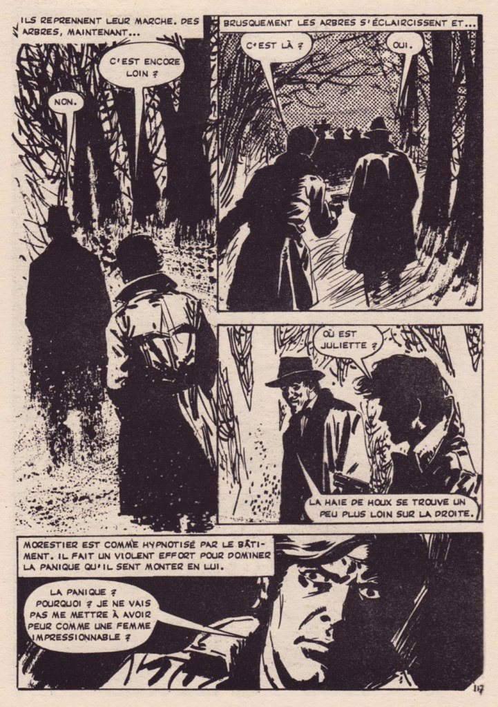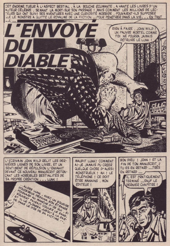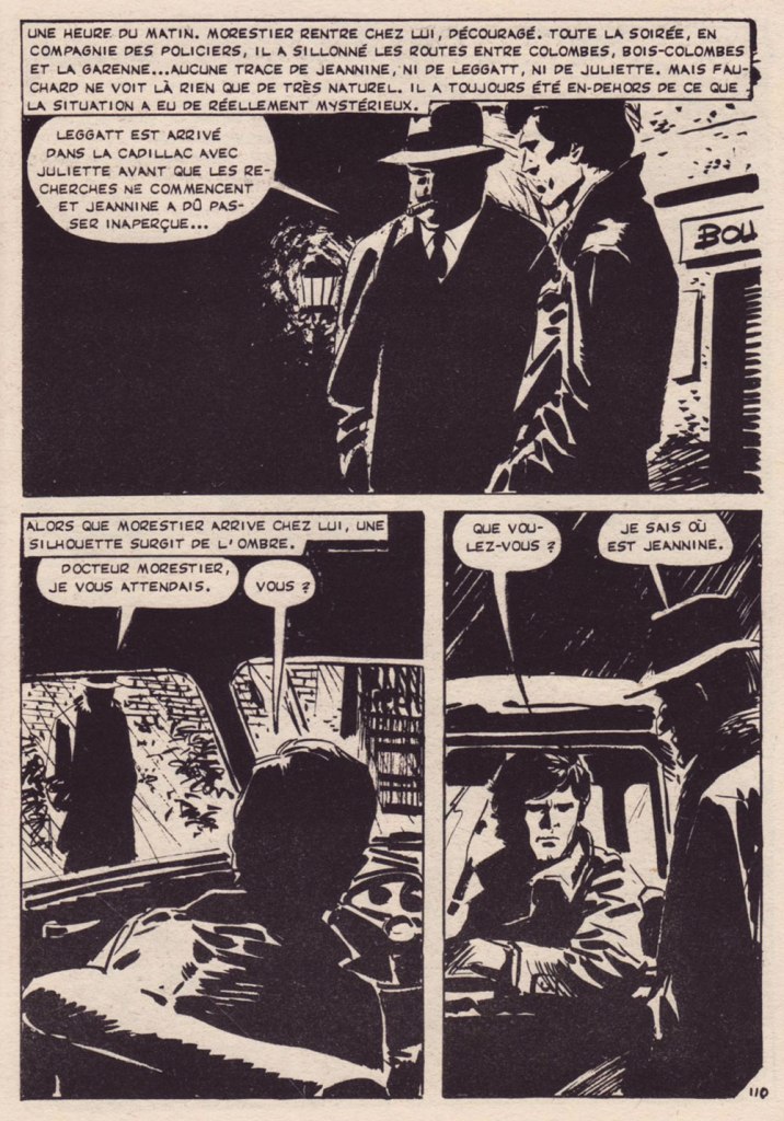 This issue was a relative exception, cover-featuring an original work (or at least not an American one), the sort of material the publisher usually reserved for its more “serious” titles. These were often comics adaptations of horror or suspense novels issued earlier by mother company Les Presses de la Cité under its Fleuve Noir imprint. Graphic novels? Exactly.