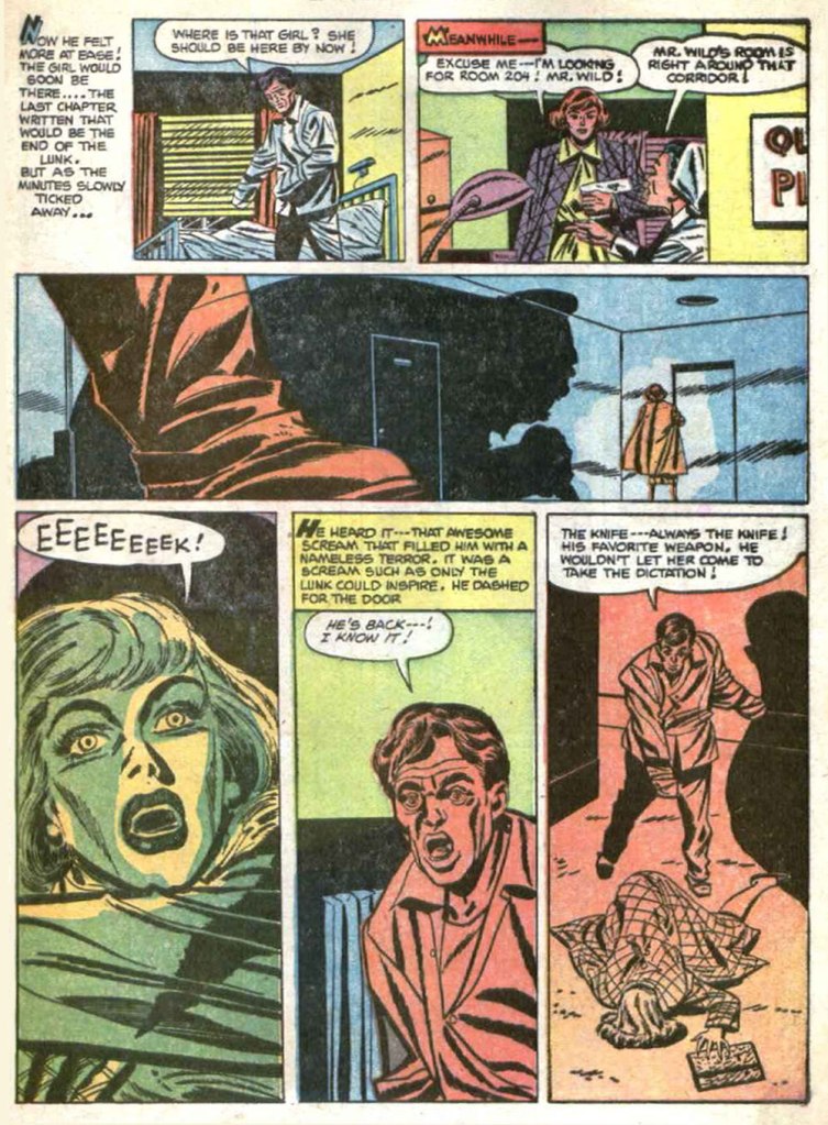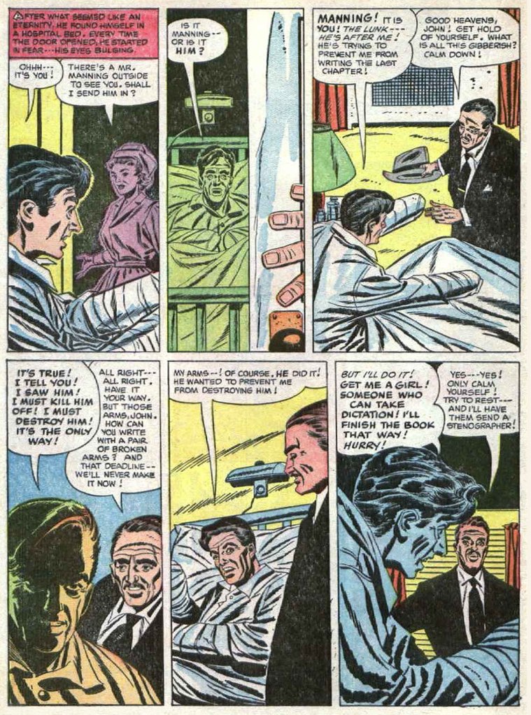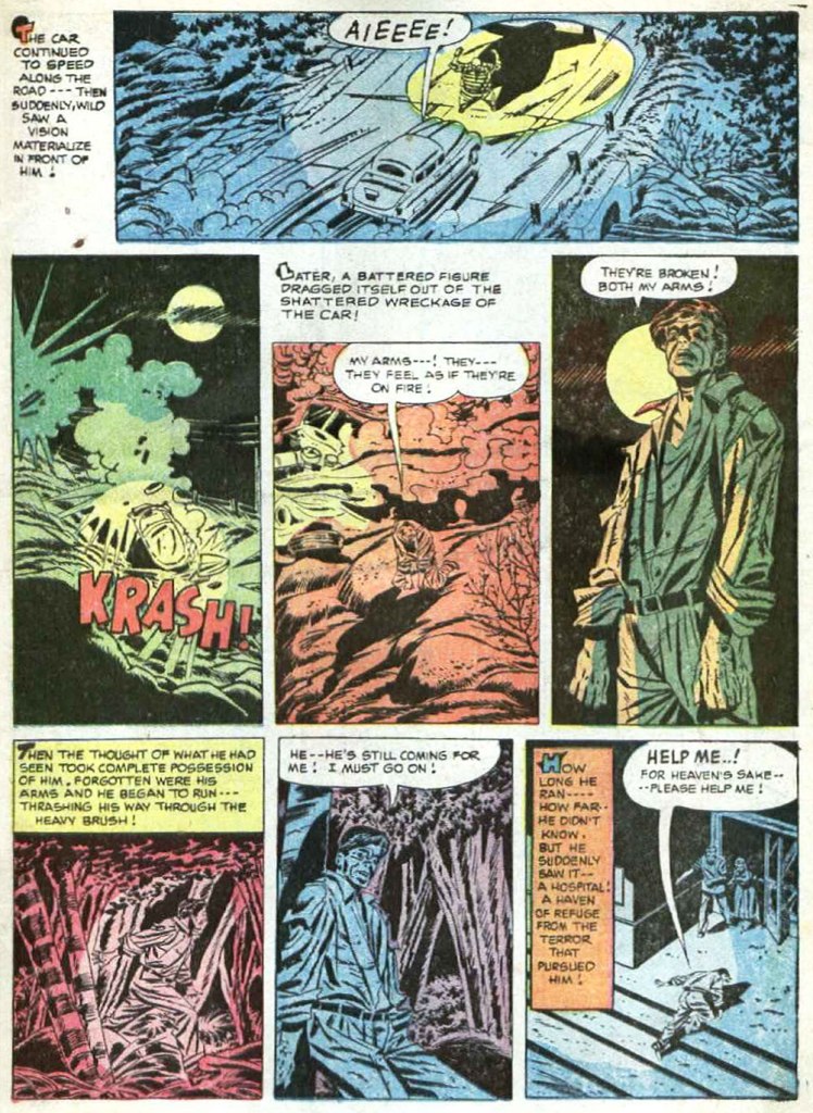 Anyway, that essential premise reminded me vividly of a harrowing comic book story I’d encountered as a child. Here it is — poorly reproduced, I’m afraid — and I’ll provide a bit of context afterwards.