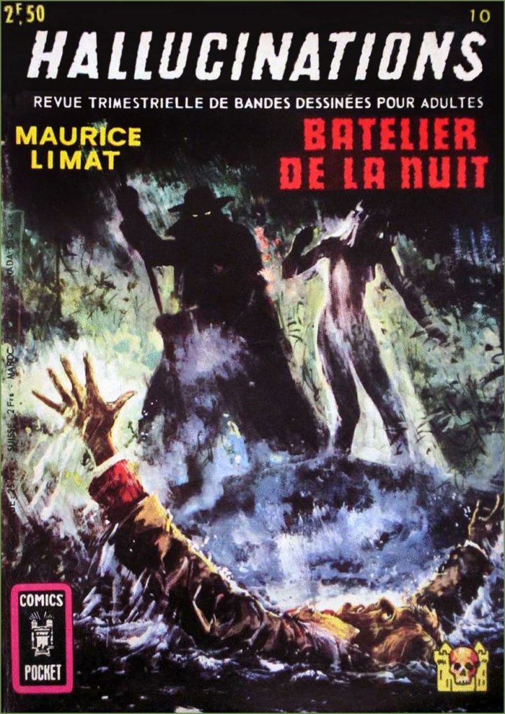 This is Hallucinations no. 2 (Sept. 1969, Arédit). Cover artist unknown. The prolific horror and SF writer André Caroff was a nom de plume of André Carpouzis.This is Hallucinations no. 6 (Sept. 1970, Arédit). The splendid cover painting is the work of Carlo Jacono (thanks for the ID, Caspar!) and the insides by prolific Spanish cartoonist Adolfo Buylla (1927-1998), who contributed to Gold Key’s spooky titles in the 1970s. Marc Agapit was one of the literary pseudonyms used by Adrien Sobra (1897-1985). This is Hallucinations no. 10 (July 1971, Arédit). Cover artist unknown. Maurice Limat (1914-2002) was another busy — but sometimes excellent — writer of SF, crime and horror.
