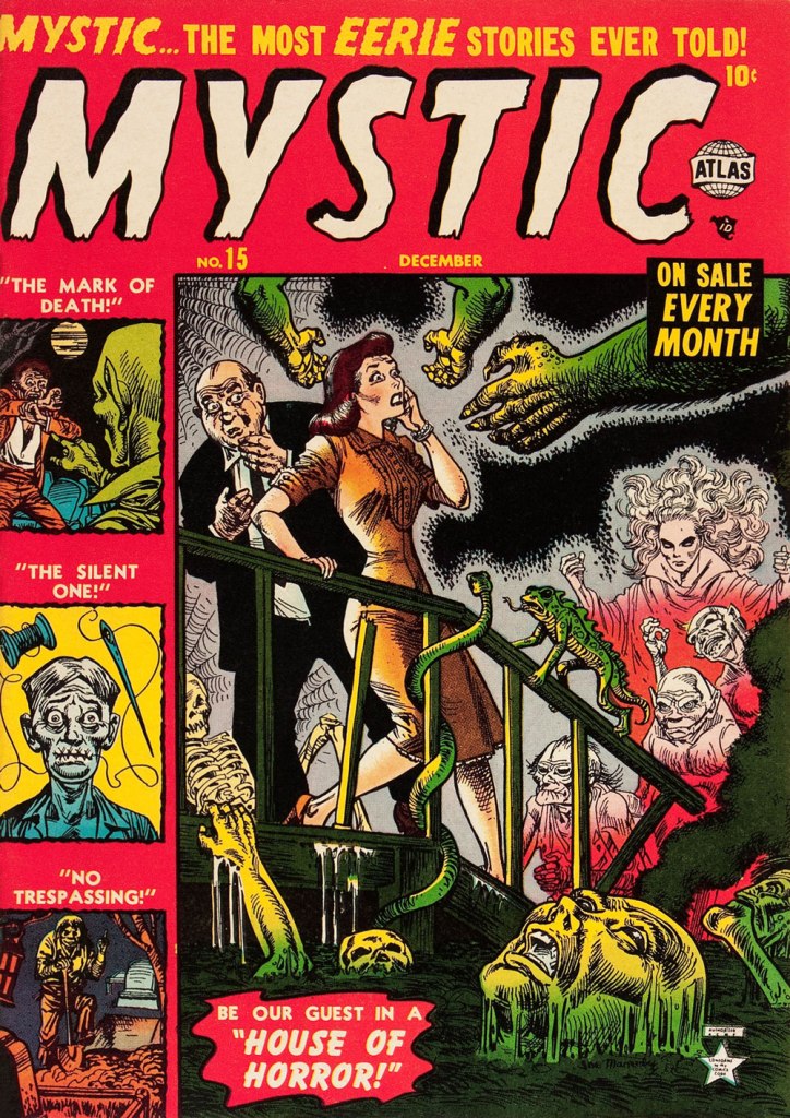 “Mystic” is evidently one of Marvel’s pet titles: the title was first used by Timely in 1940-42, then again in 1944-45; once more, most successfully in this Atlas horror series, for 61 issues from 1951-57. And lately in 2009 and 2011. I’ll bet that tradition’s not yet done with, but why on earth?