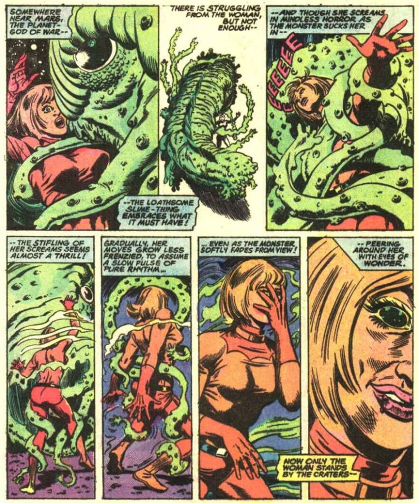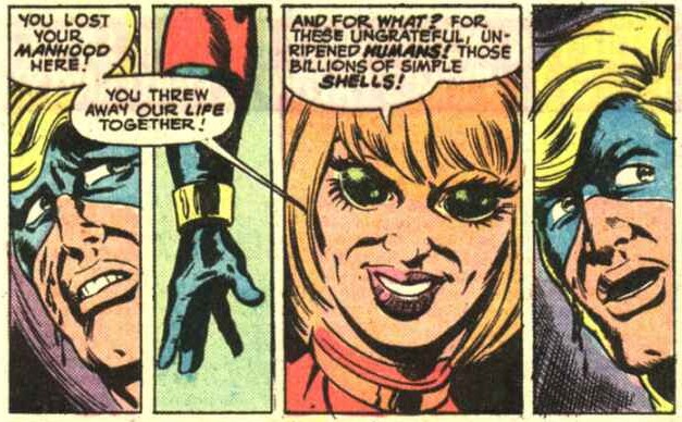 Will Captain Mar-vell be able to kill the woman he loves, even if she’s more of a shell inhabited by a tentacled psychic monstrosity, and despite having lost his manhood, whatever that was?