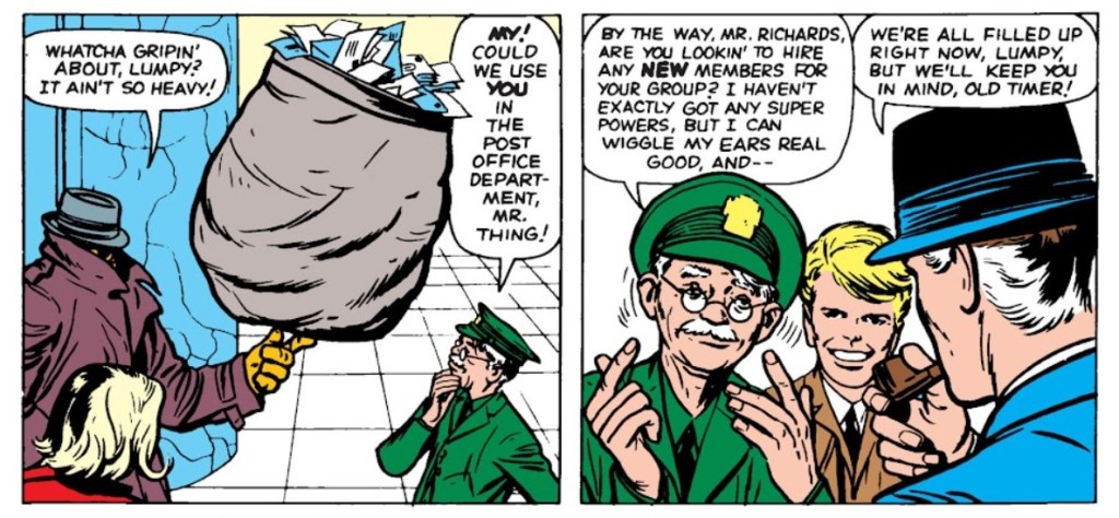 If the name Lumpkin rings some sort of different bell for you, it might be because he got incorporated into the Marvel universe in 1963 – a much older Lumpkin became the Fantastic Four‘s mail carrier with issue no. 11 (February 1963):