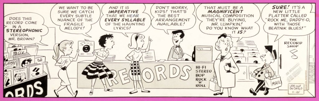 Newspaper comics do it, too! This is Teena A Go Go from December 4th, 1966, written by Bessie Little and illustrated by Bob Powell.