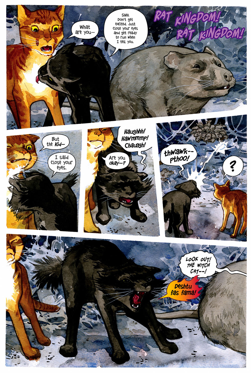 Pages from Something Whiskered This Way Comes, published in Beasts of Burden no. 3 (November 2009). This story highlights the somewhat tense relationship between Orphan and his romantic interest/enemy Daphne, the black magic cat from an earlier story.