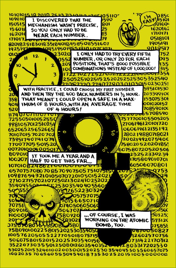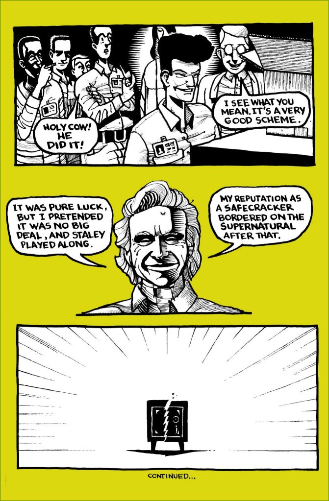 « Though this is fictionalized science, it’s not science fiction. We’ve imagined some of the details, but the characters existed, and did and said (most of) the things you’ll read. » Two-Fisted Science: Safecracker (1997, General Tektronics Labs). Published in advance of the Two-Fisted Science anthology, in order to promote it. However, Bernie’s piece outshines everything else, if you ask me. For good or ill, cheap copies of the comic book are still handily acquired.
