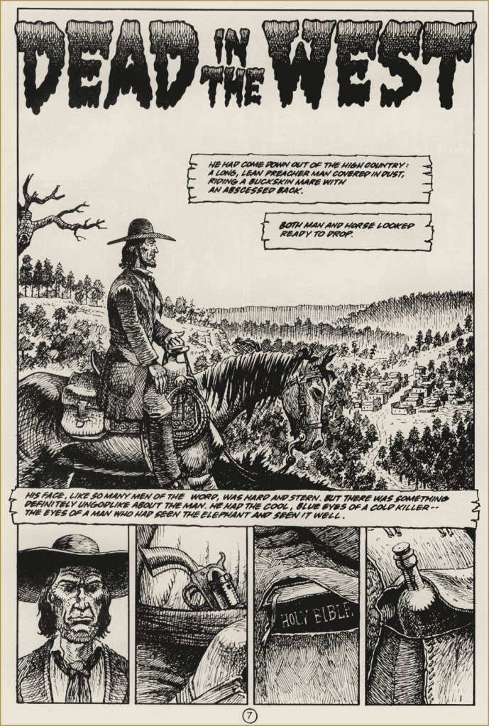 This is Dead in the West no. 1 (Oct. 1993, Dark Horse); cover by Lansdale regular Timothy Truman. I guess he sells more books than Jaxon, but I’ve never been a fan, save when he’s inked by Sam Glanzman, (1924-2017) who expertly ironed out the chronic stiffness in Truman’s pencilling.I must concede that the giant spiders are a novel touch.This is Dead in the West no. 2 (Oct. 1993, Dark Horse); cover, again, by Mr. Truman.