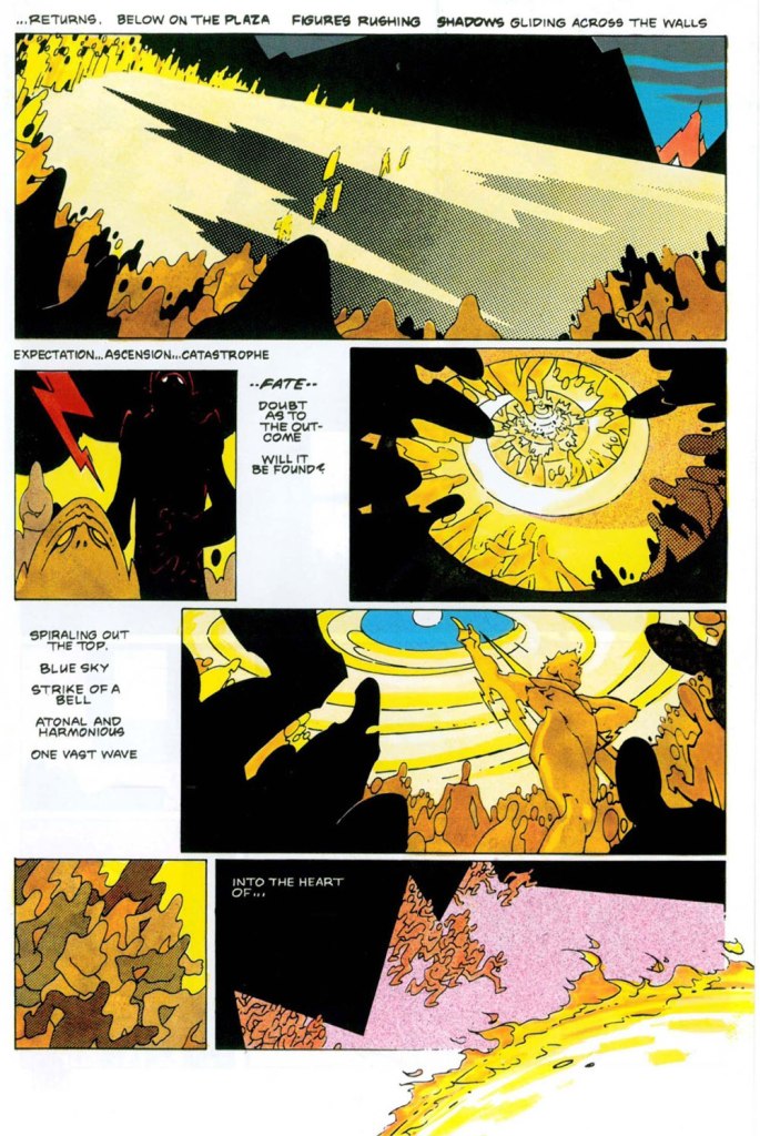 I would rephrase that to ‘personal stuff’. Russell’s own stories (such as Breakdown on the Starship Remembrance or La Sonnambula and The City of Sleep A Fragment of a Dream that appeared in Night Music no. 1 and no. 2 published by Eclipse Comics in 79 and 85) blew me away when I first encountered them. Imagine my initial enthusiasm when I finished reading them and anticipated exploring Russell’s bibliography… to find myself amidst seemingly endless comic book adaptations of Wagner and Mozart operas and traditional fairy tales. His work with Neil Gaiman did not spark any further curiosity on my part.* Artistically speaking, almost all Russell draws is impeccable, majestic, and ambitious in scope — but what is the pleasure in all this splendour without an emotional connection? Again and again he deploys a lush romantic carpet upon which innocent youths frolic… but it is a walk, alas, through a rose garden in which everything is scentless.