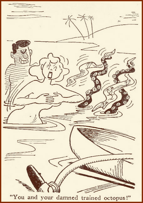 The image used for the cover of Wham! (April 1954, Wolf Books). Another trained octopus – working for his own account and calling the shots!