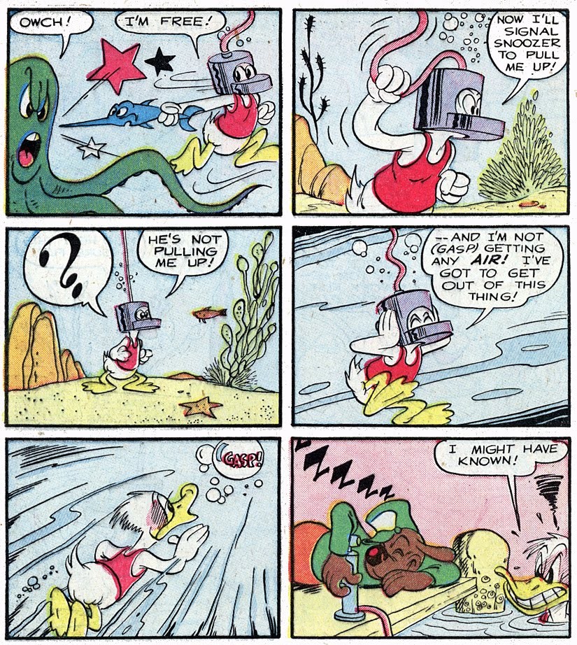 Next up, two pages from The Daffy Diver, published in Dizzy Duck no. 32 (November 1950, Standard Comics), artist once again unknown: