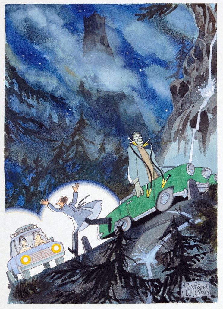 The issue does contain a couple of fun wash illustrations, including this one by the esteemed Mr. Powell, also (along with the cover), accompanying the main feature, Horror Beasts Dine Tonight. “And will that be your usual table, sirs?“