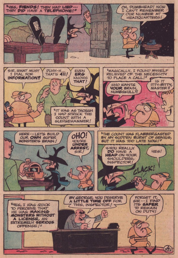 While Gold Key’s Pink Panther and Inspector comics were fairly competently written and drawn (The Pink Panther didn’t last eighty-four issues for nothing) they could not hold a candle to Mirisch Films‘ mid-1960s Inspector shorts. In fact, this particular Inspector tale is a retelling/adaptation of one of these, 1968’s Transylvania Mania. Watch it for comparison (and enjoyment) — they’ll be six rather well-spent minutes of your time!