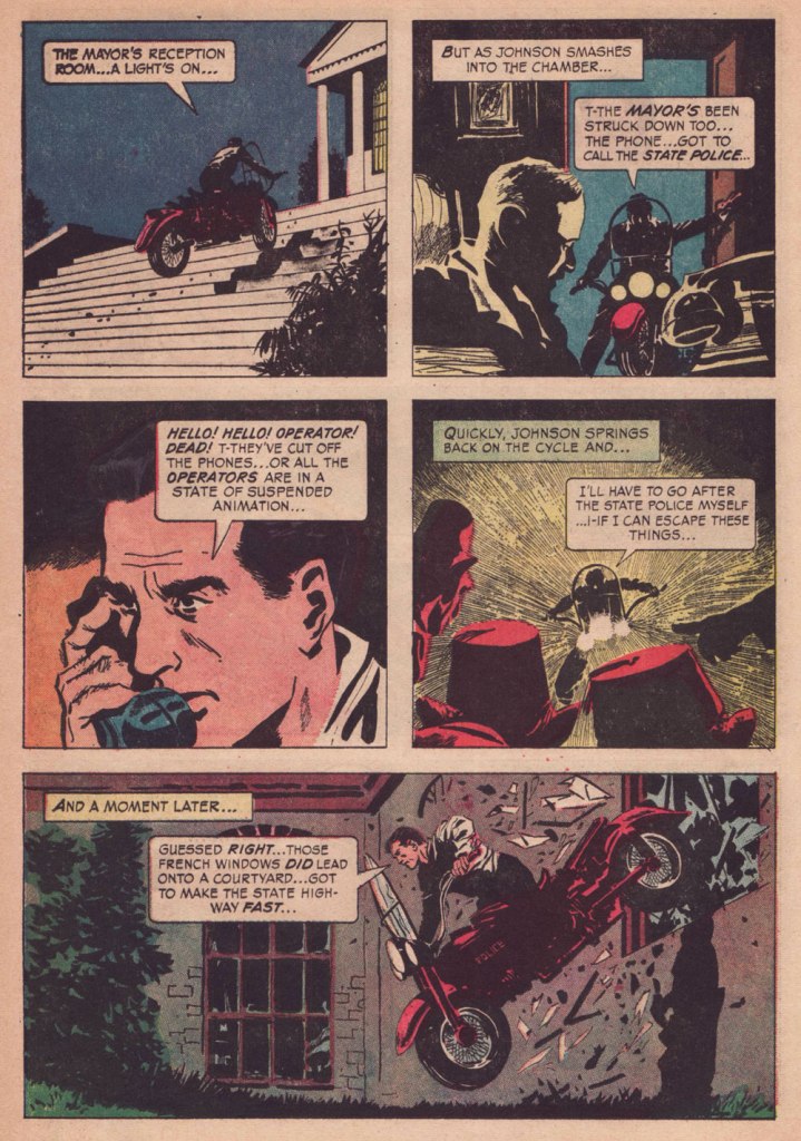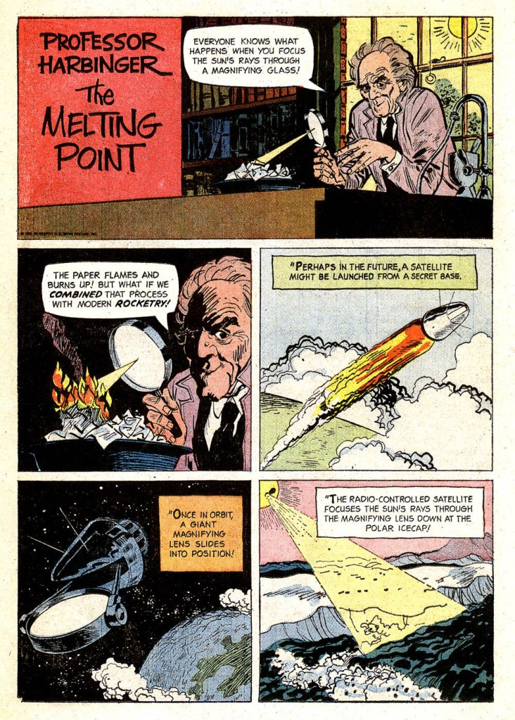 For some sense of Crawford’s range, here’s an episode of Professor Harbinger, a speculative ‘science’ backup feature that regularly appeared in Doctor Solar, Man of the Atom. This, the inaugural vignette, saw print in the magazine’s second issue (Dec. 1962, Gold Key). It was scripted by the prolific Dick Wood; Crawford must have enjoyed the feature, as he stuck around to illustrate its first dozen or so instalments. He was succeeded by fellow Ontarian Win Mortimer.