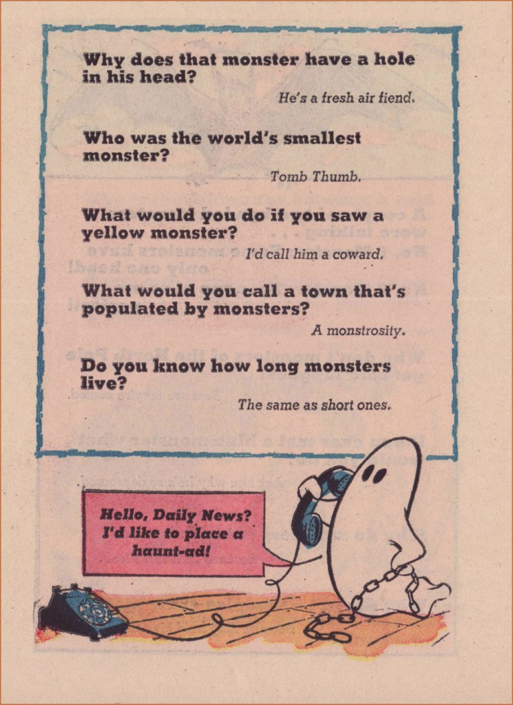 As Gold Key comics published fewer ads than most of their rivals, they could afford such frivolities as joke and riddle pages, even in addition to the legally mandated text pages.