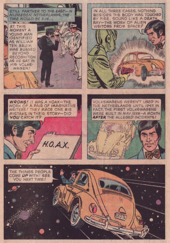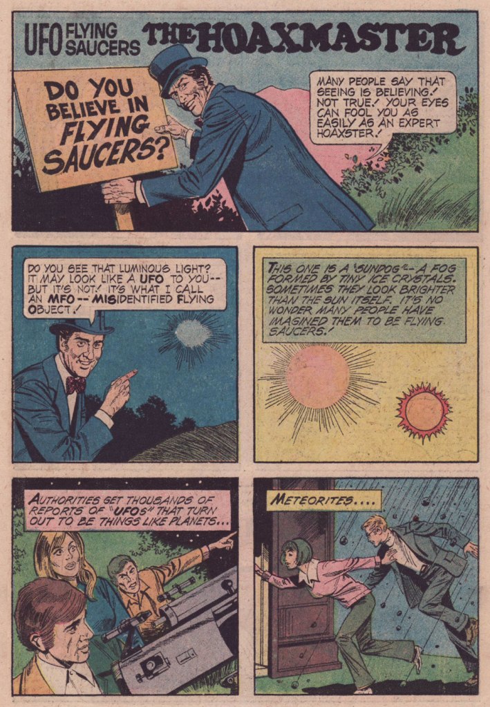 Time to keep a promise — a promise to myself, but just as worthy of being kept. A couple of years ago, I posted the first half of a favourite comics feature of mine, ‘The Hoaxmaster’, which ran in most issues of Gold Key’s UFO Flying Saucers in the 1970s. At the time, I declared that I might get around to posting the second half of the set some World Contact Day, which is today.
