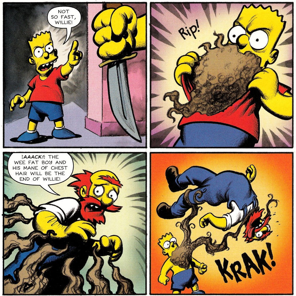 Treehouse of Horror no. 9 (September 2003); cover by Bill Morrison. Here we see how Homer has opted for the more destructive, tentacle-hands choice.