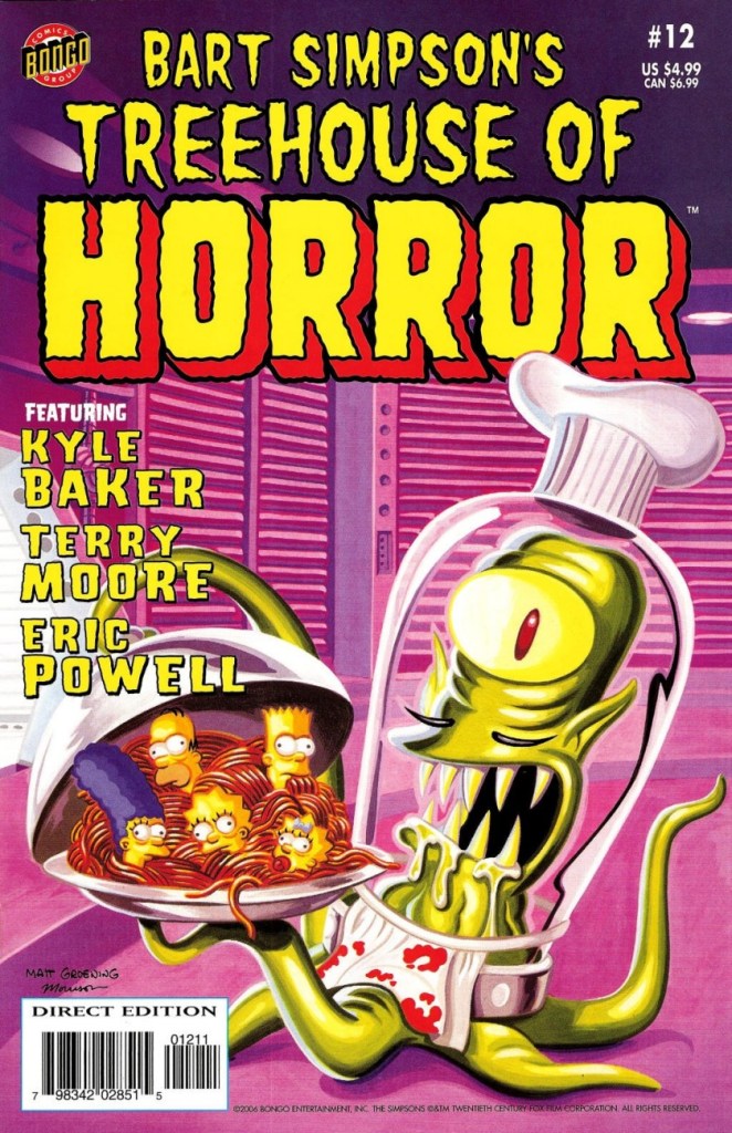 Treehouse of Horror no. 2 (September 1996). Cover by Bill Morrison, who, incidentally, is the co-founder of Bongo Comics and creator of Roswell: Little Green Man.