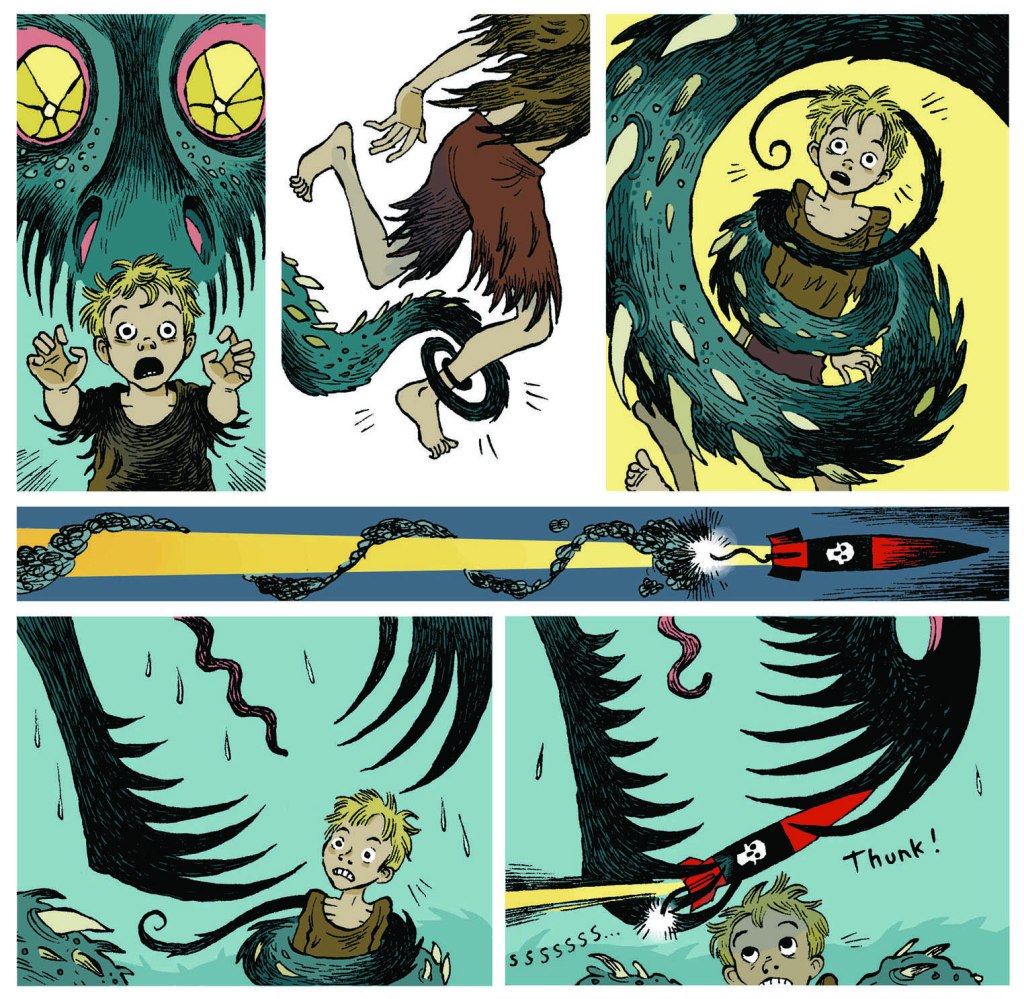 The cover story is rife with tentacles, but unfortunately doesn’t feature the scene depicted above at all.