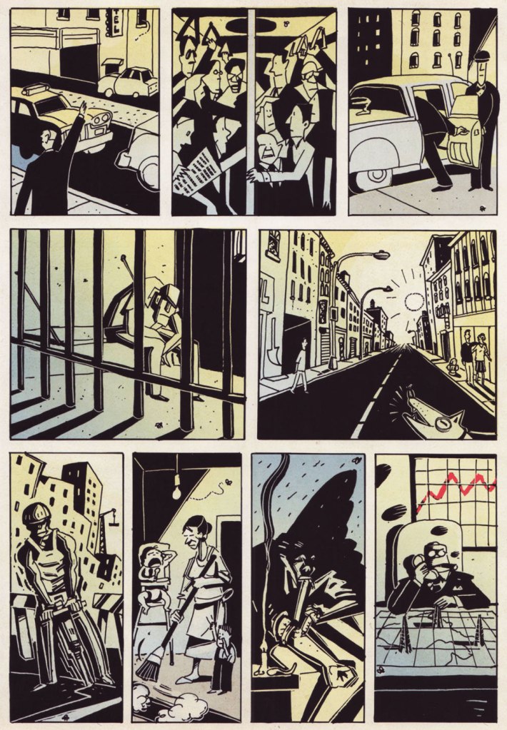 The following is a page from the mute Twenty-Four Hours, which chronicles the strikingly different lives of NYC denizens as they go about their day: