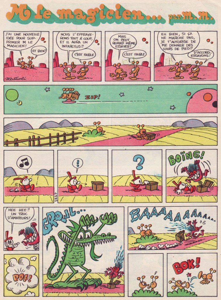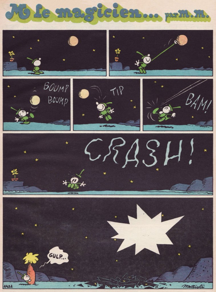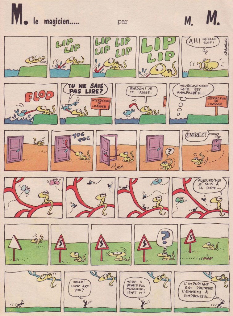 Rieu’s successor as Pif’s editor-in-chief, Richard Médioni, wrote: « In brief, in the Fall of 1969, Hugo Pratt found himself out of work. » After Pratt is crowned, that year, Best Italian Cartoonist at the Salone Internazionale dei Comics in Lucca (Europe’s oldest comics festival)… « It was expected that all publishers (French, Italian, and others, all present at the Salon) would push and shove their way to Hugo Pratt to propose a collaboration… but no such thing happened. Only Pif Gadget showed interest. »