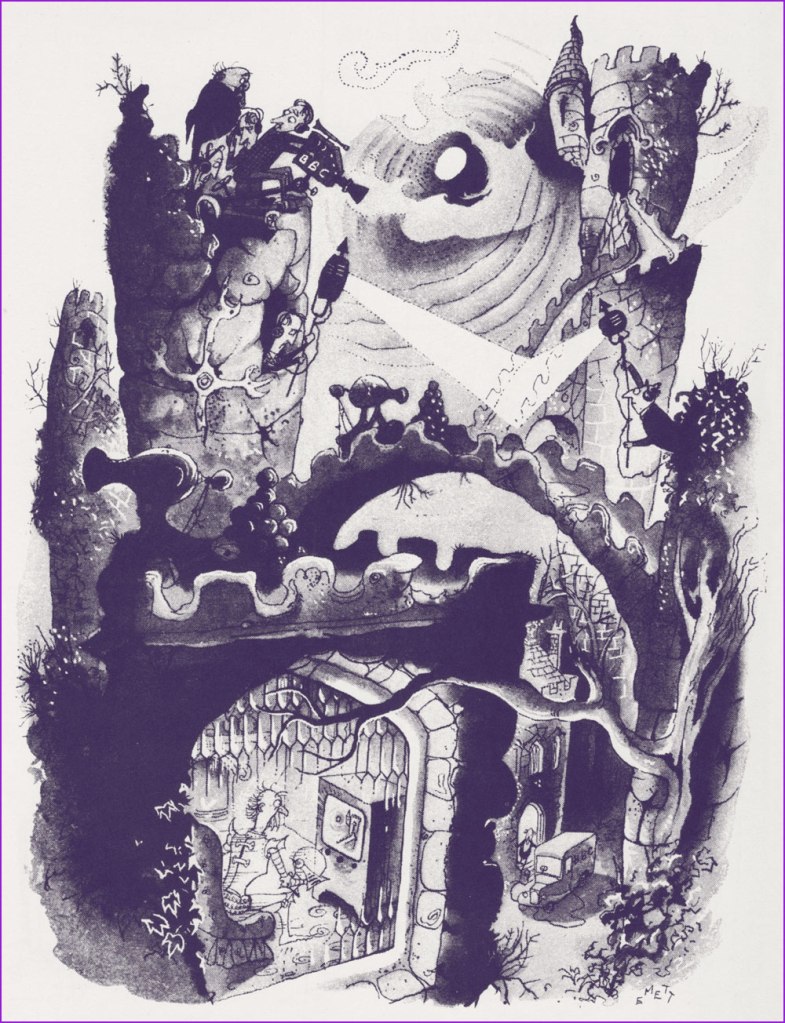 The rambunctious Raymonde started out in advertising, cushioning his finances by freelancing as a cartoonist, mostly notably for Tit-Bits, a British tabloid-type magazine with an amusing name which reminds me of this George Carlton sketch. By 1960, Raymonde had amassed enough contacts to become a full-time cartoonist.