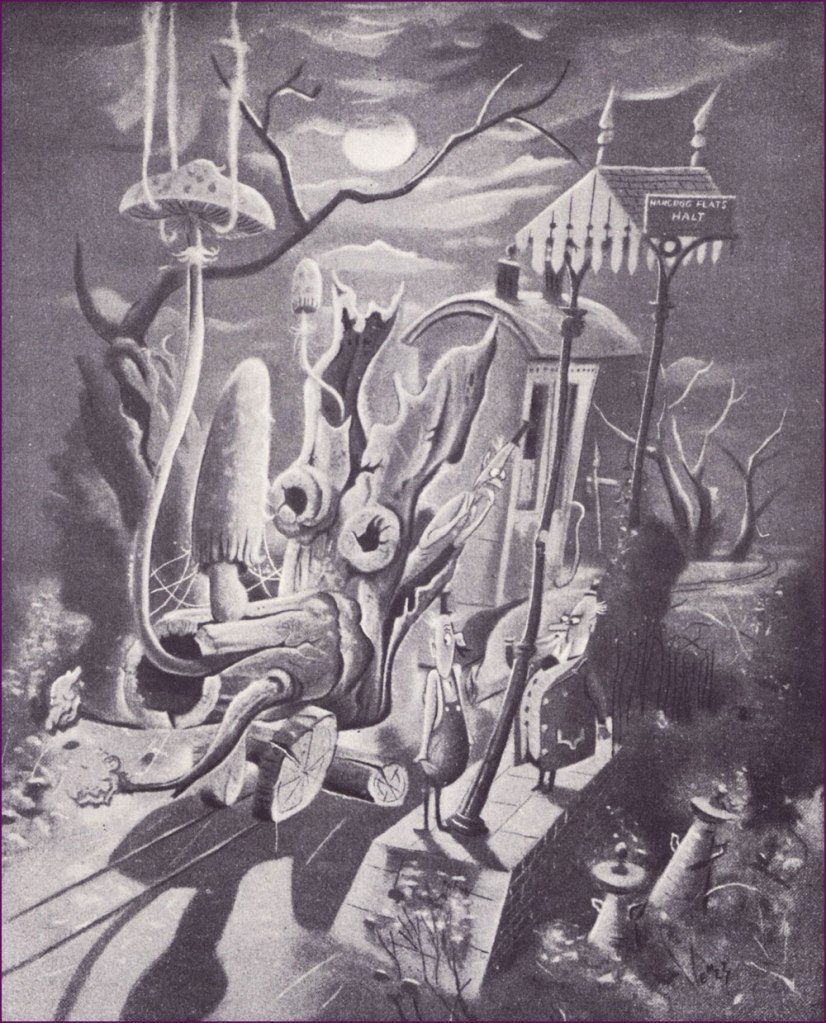 British cartoonist Roy Stuart Raymonde, who died in 2009 at 79 years old, first intrigued me with vivid watercolours and episodes oftimes set in mushroomy forests or secluded glens dotted with babbling brooks. Our anglophilically-minded readers may recall his work for Punch Magazine, and the rest of us will recognize him from the pages of Playboy, to which he contributed a monthly full-colour page for some 30 years.