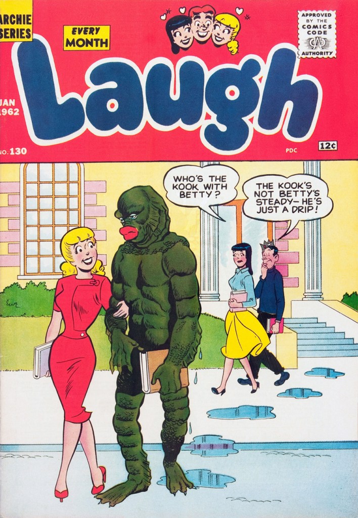 This is Laugh no. 130 (Jan. 1962, Archie); cover by Samm Schwartz. Looks like our friend Ricou Browning is slumming it in Riverdale, with Betty happily showing him the sights. Honestly, he’s more of a gentleman that Archie ever was.