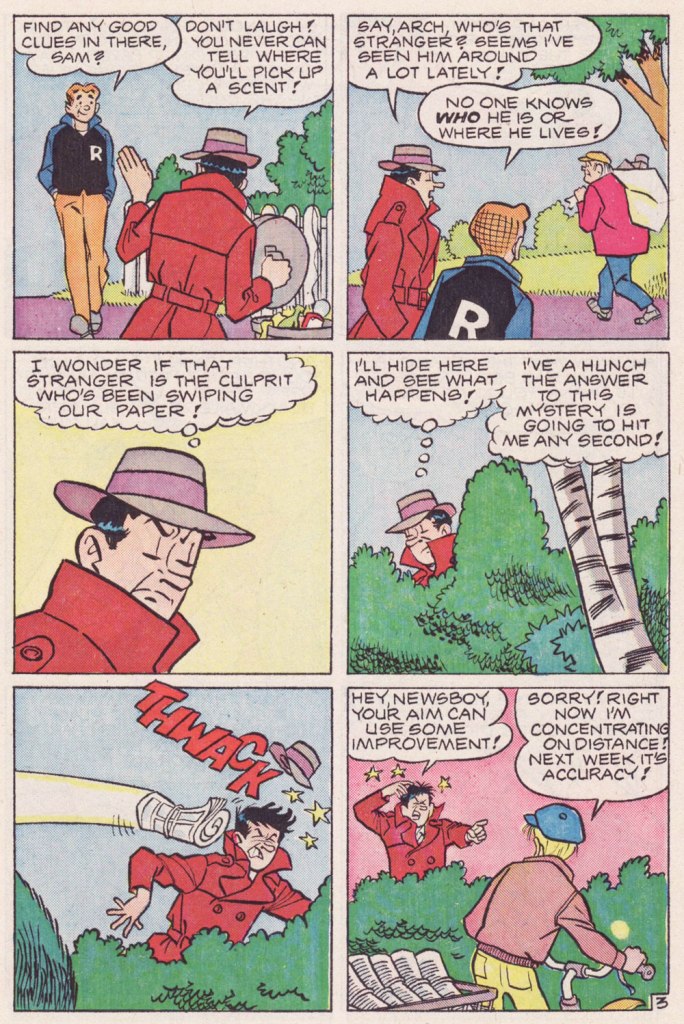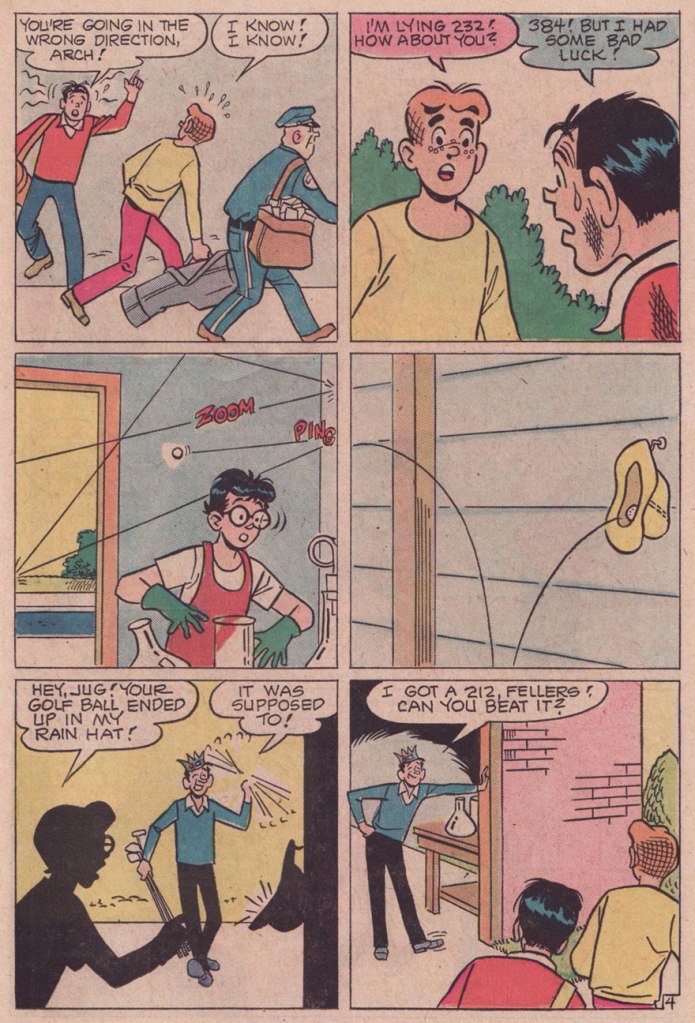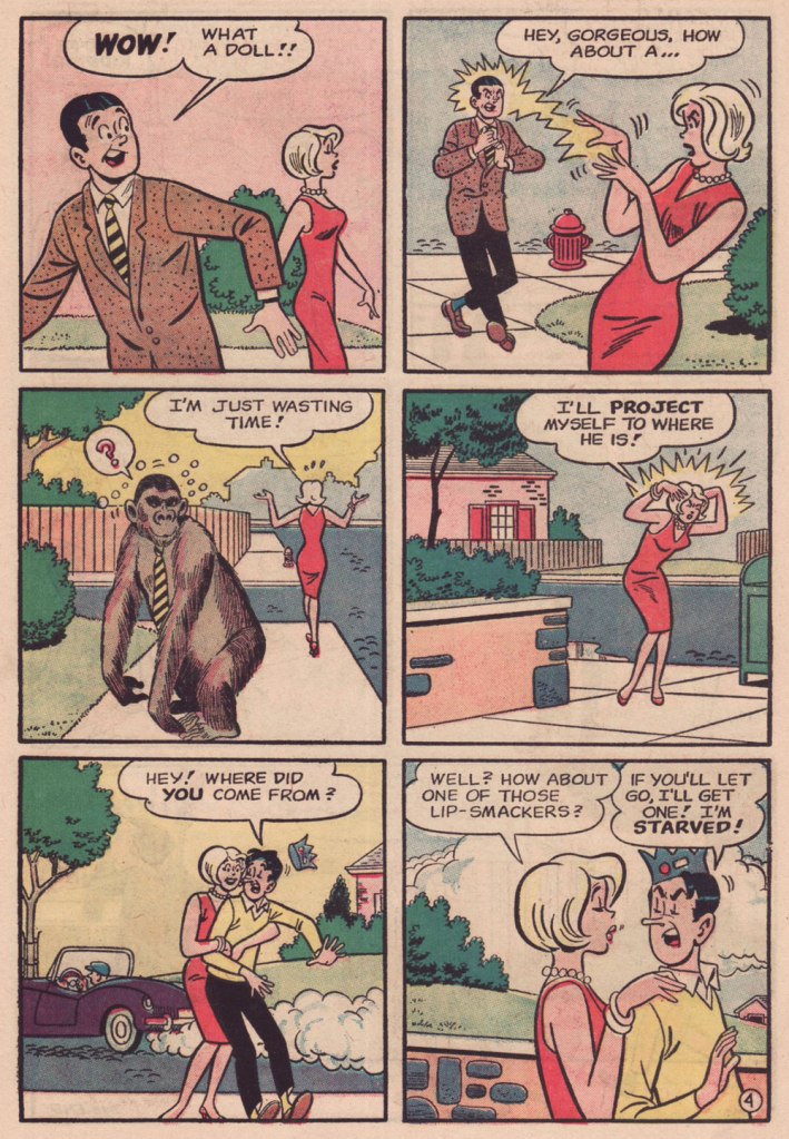 Since Jughead no. 116 had a strictly non-oddball cover by Harry Lucey, here’s a more thematically fitting one from local chouchouBob White. This is Archie no. 126 (Apr. 1962, Archie).