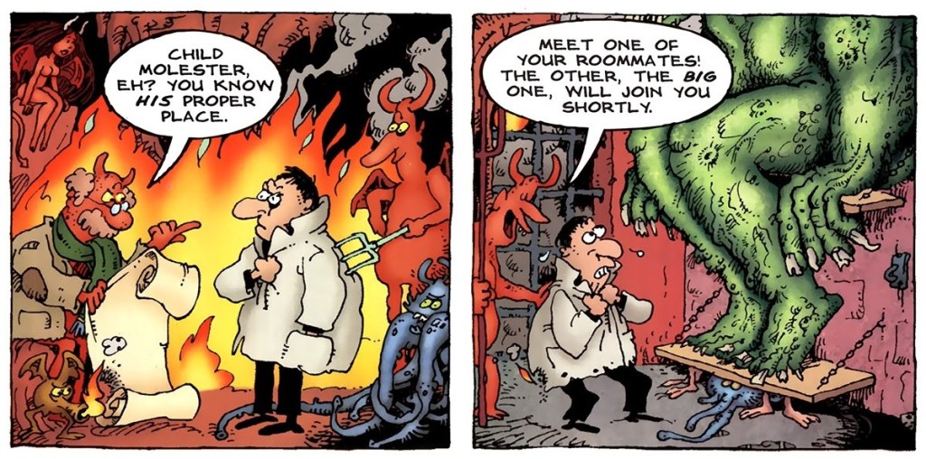 Panels from Sergio’s Inferno, published in Sergio Aragonés Funnies no. 3 (September 2011, Bongo Comics):