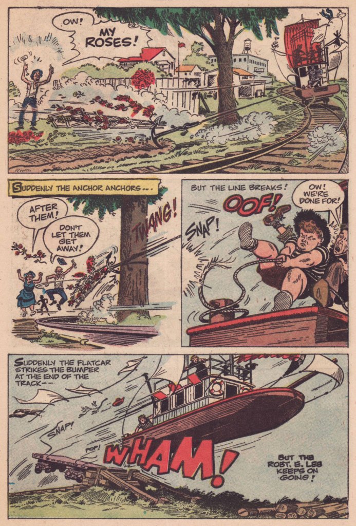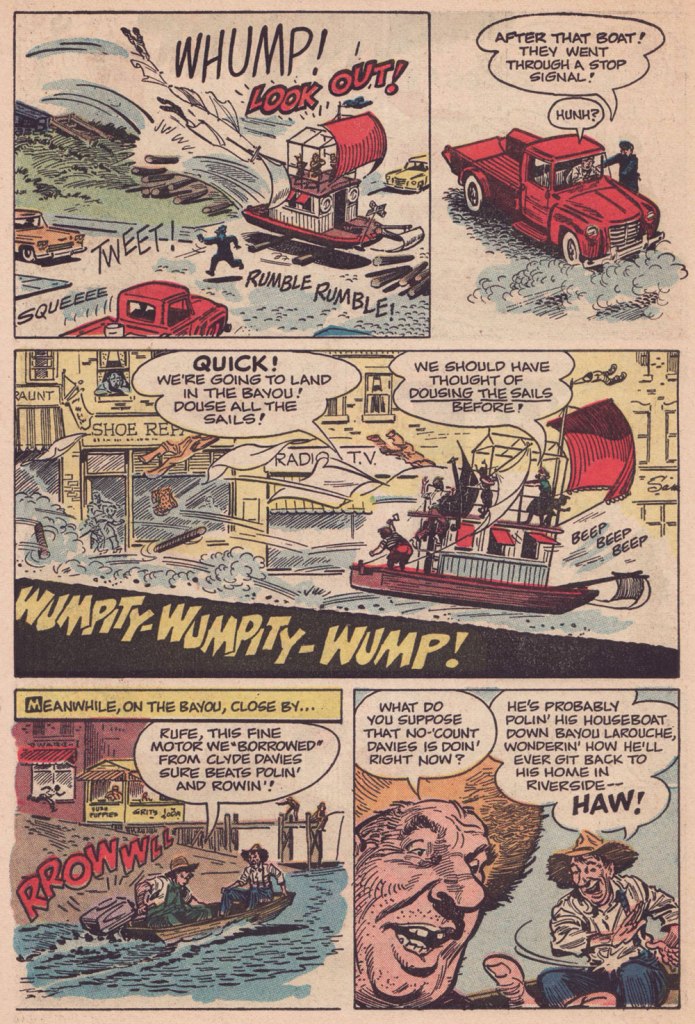 I was going to feature a gallery of favourite Borth pages from all over the place, but instead decided it might be more interesting to highlight his ability to break down an action sequence, since that’s the palpitating heart of an adventure yarn. Therefore, here’s chapter 4 of “The Champ’s Treasure Hunt“, published in TCOF&F volume 15, No. 4 (Oct. 22, 1959).