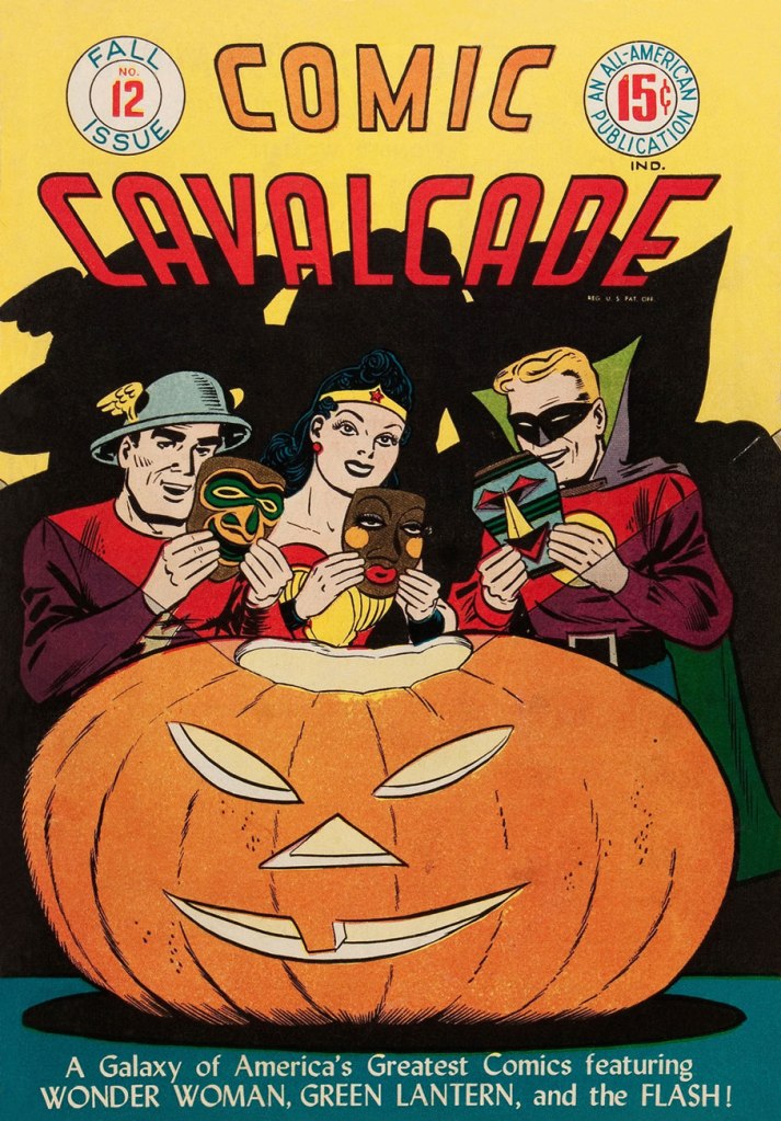 Here’s a real hallowe’en corker from the Golden Age of comics, featuring the ageless Wonder Woman, presented here by her original creative team… with a twist. While the story is credited to Charles Moulton (the nom de plume of William Moulton Marston), it was ghost-written by his former student and collaborator Joye Hummel (1924-), the first woman to write Wonder Woman’s adventures. She is frequently credited for being the first woman to script superhero comics, but nope, that’s at least three years after Tarpe Mills gave the world her Miss Fury.