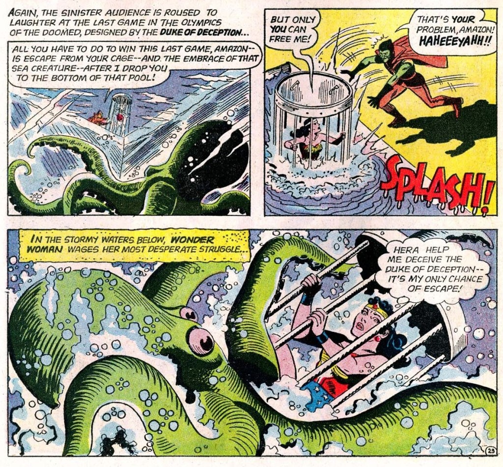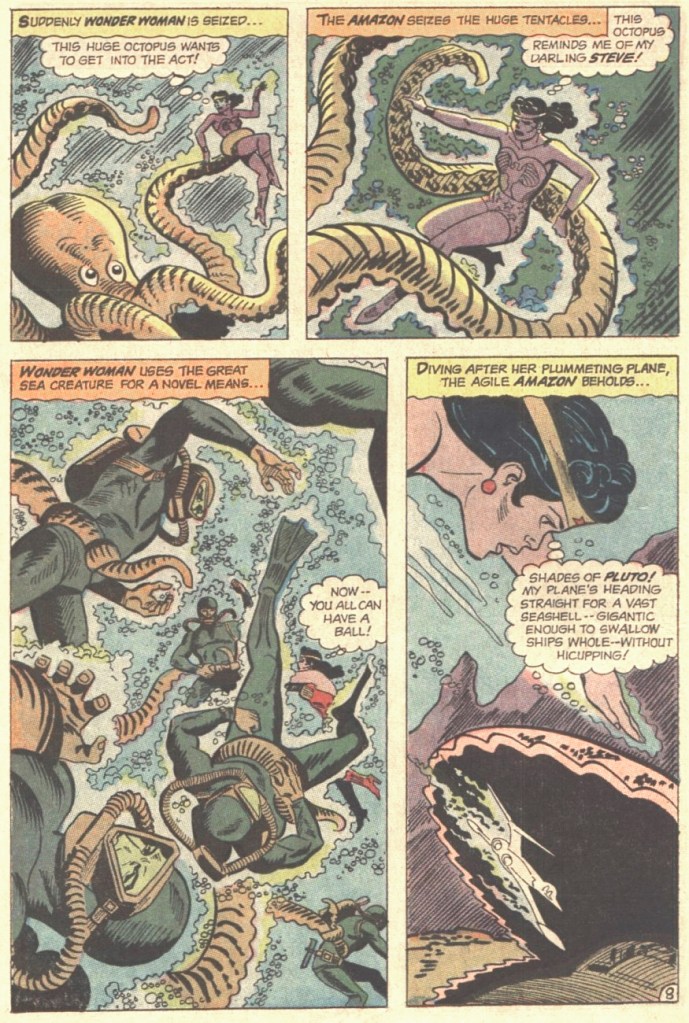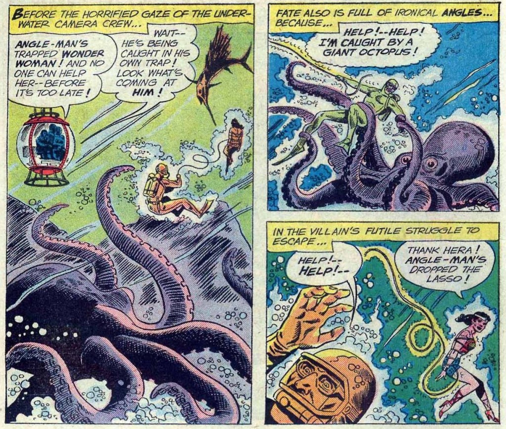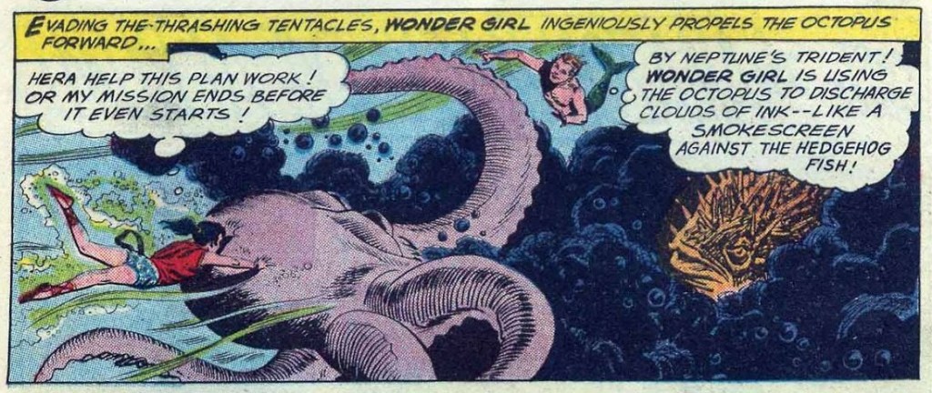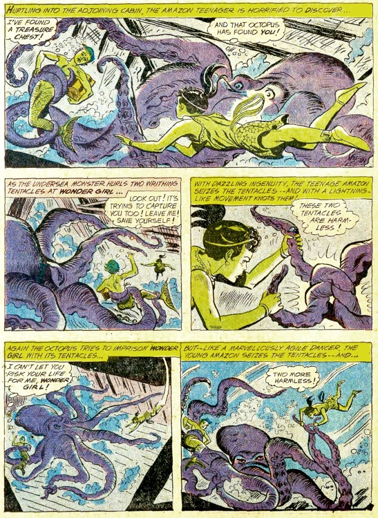 And voilà! But don’t fret, we will see Wonder Woman in the tender embrace of an octopus again… this time in the 60s, Robert Kanigher and all.