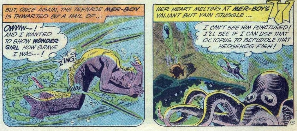 Page from The Chest of Monsters!, published in Wonder Woman no. 112 (February 1960). “Having to rescue Mer-Boy yet again”, part 300.